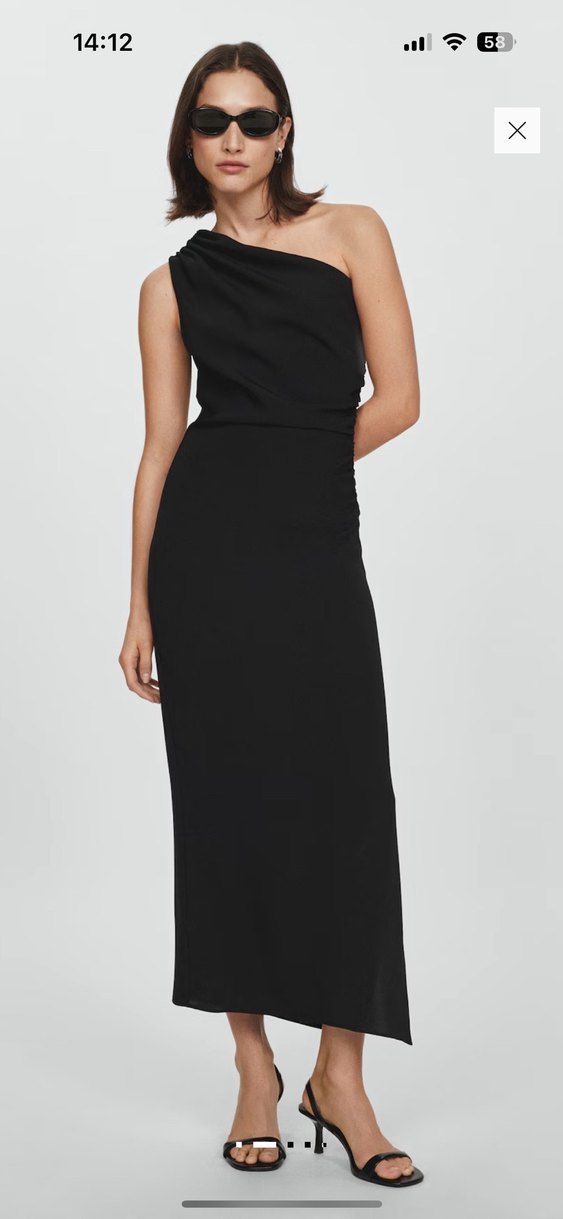 Mango Siyah Drapeli Midi Kadın Elbise