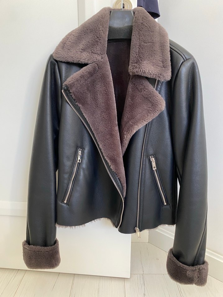 Mango Siyah içi Kürklü Deri Biker Ceket