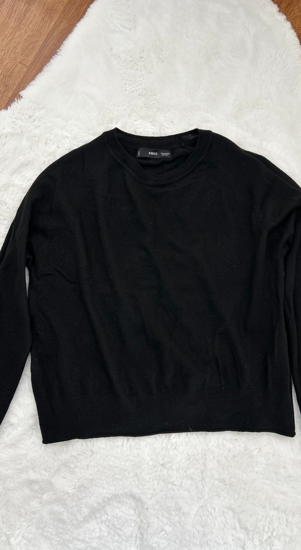 Siyah renkli, rahat kesim kadın kazak, yuvarlak yaka ve uzun kolludur. Rengi canlı siyah tertemiz.
