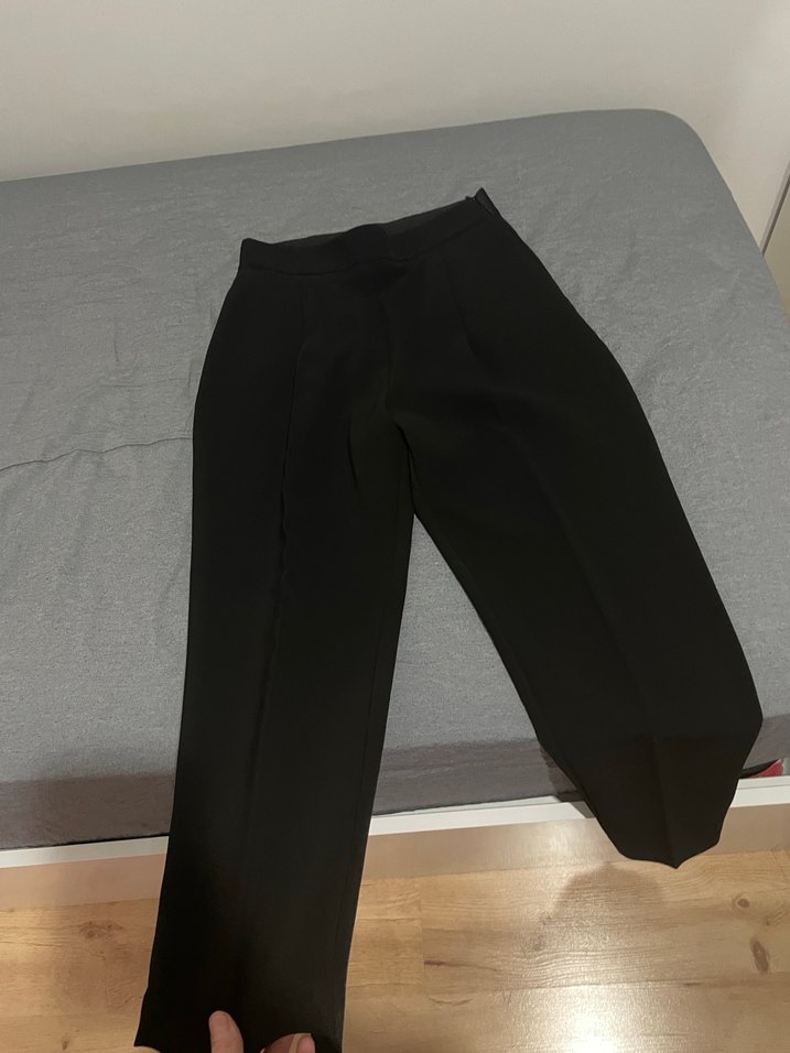 Siyah, midi boy, regular kesim kadın pantolon. Ipeksi kumaştan, ofis ve günlük şıklık için uygun. ceplidir mango marka 40 beden ama almadan önce yazın bel ve bacak boyu ölçüsünü söyliyim daha sağlıklı alışveriş olur