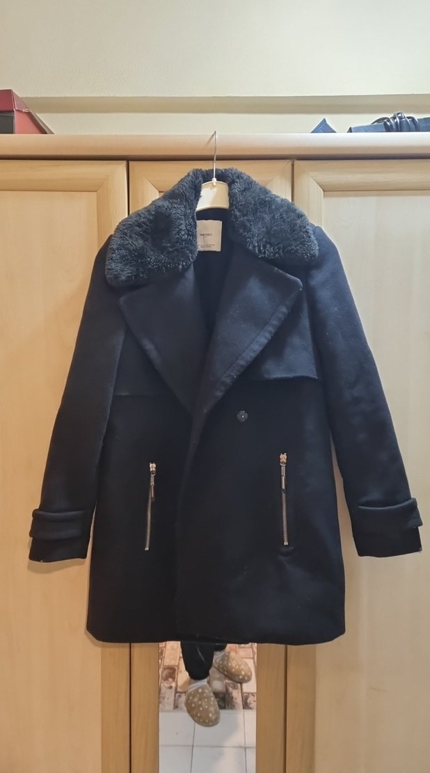 Siyah, kürk detaylı, normal uzunlukta midi kaban. Notch yakalı, uzun kollu ve rahat kesim. Yumuşak ve sıcak dokulu kumaştan üretilmiştir. hafif tuylenmesi var belli belirsiz sorunsuz tertemiz 34-36 bedene uygun