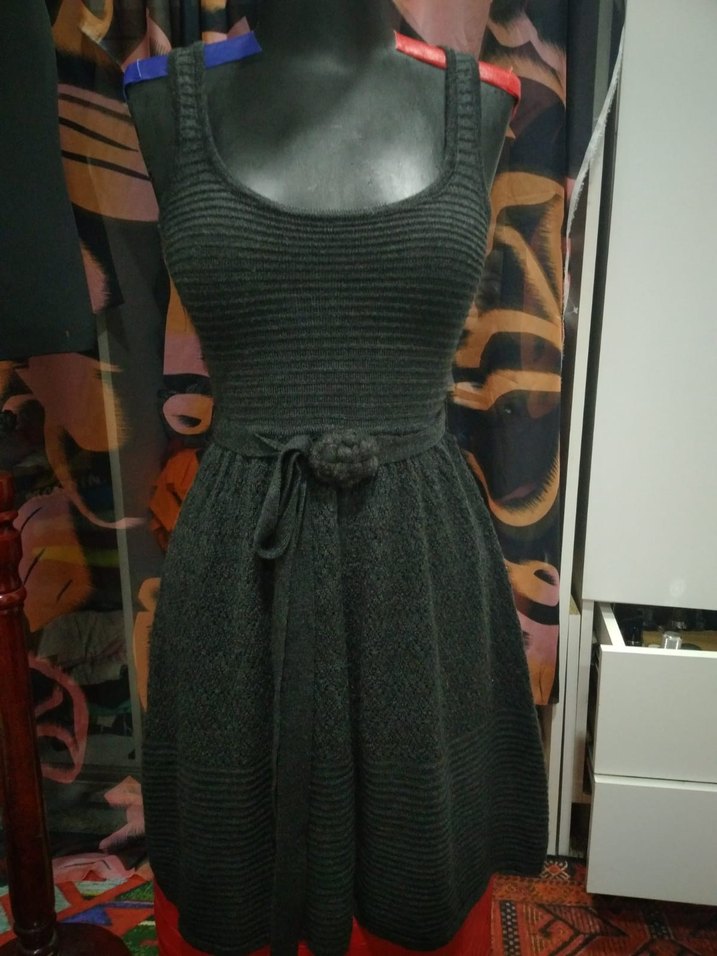 MANGO SUIT Gri Uzun Triko Kolsuz Elbise