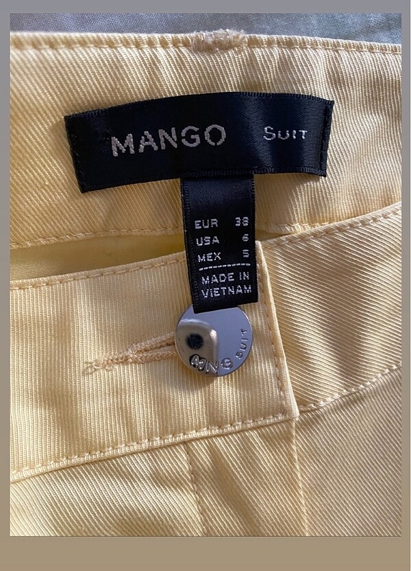 Mango suit hiç giyilmemiş terzi için uzun süredir bekleyen ince yazlık pantolon . düz kesim. Yıkanmadı bile iç etiket ve düğmesinden anlaşılıyor.Rengi açık soft sarı tam ilk fotoğraftaki gibi