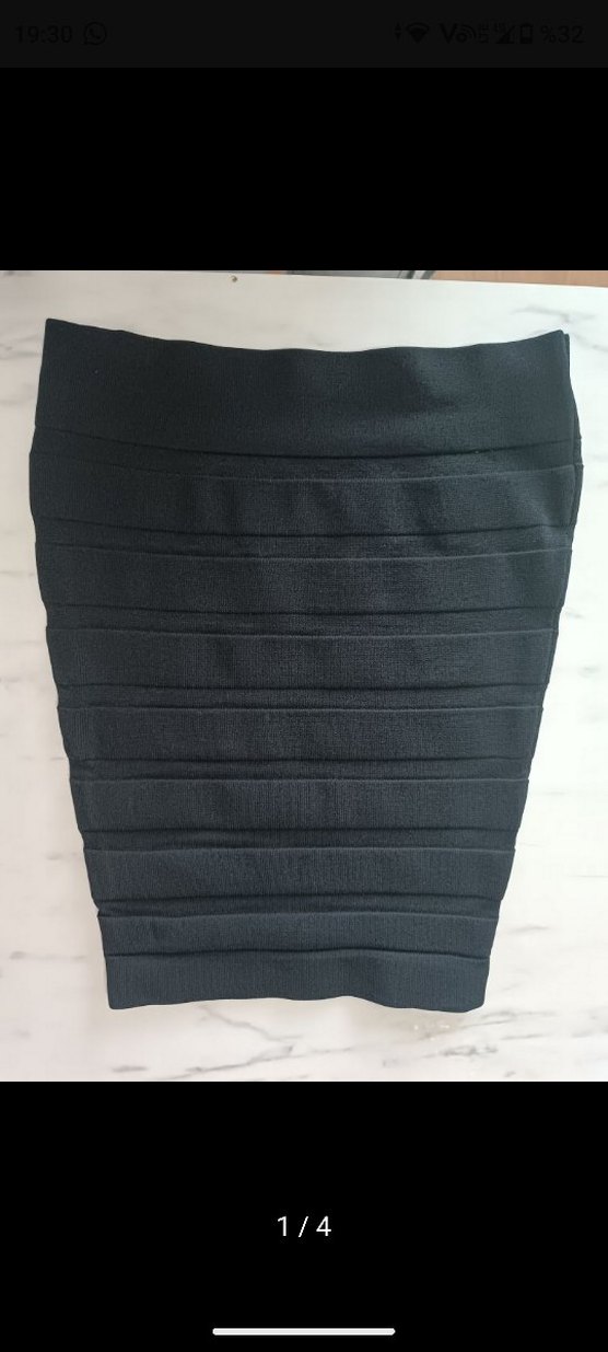 Siyah renkli, vücuda oturan midi uzunlukta minimalist ve gotik tarzda kadın eteği.