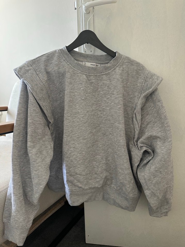 Gri renk, yuvarlak yaka ve uzun kollu, rahat kesim kadın sweatshirt. Yumuşak keten kumaştan üretilmiş, desen içermeyen günlük kullanıma uygun rahat bir parça.