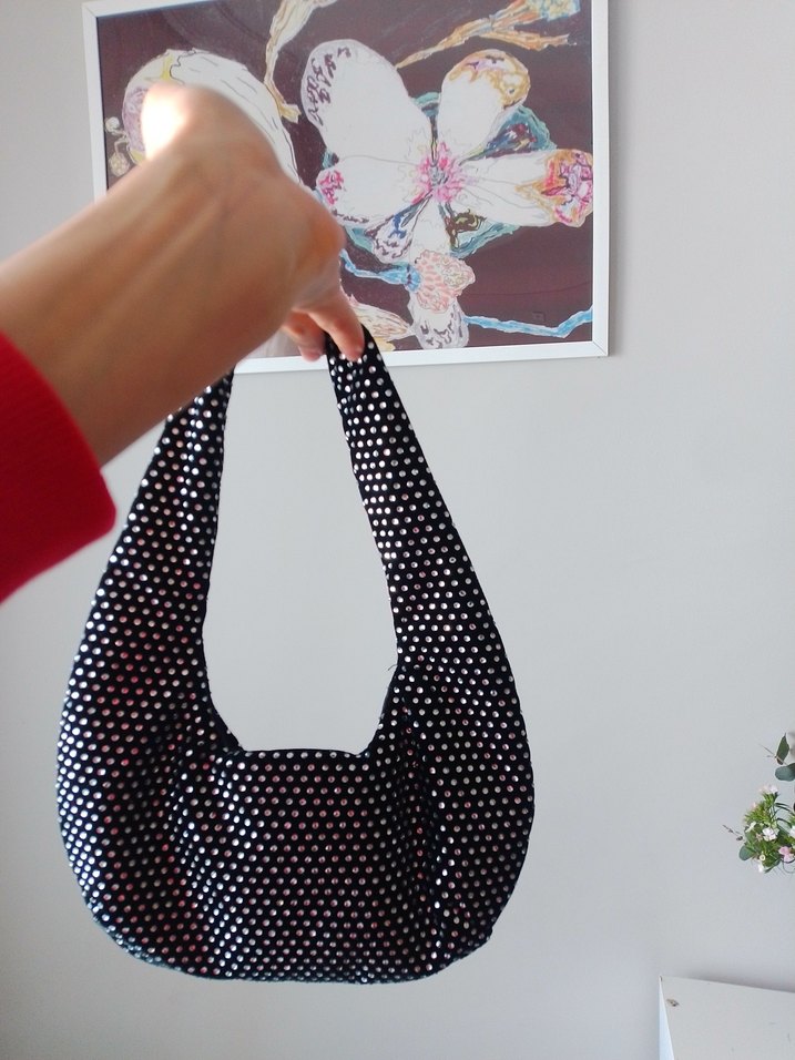 Siyah renkli üstünde taş işlemeleri olan ,mıknatıslı kadife kumaş , trend gece kadın çantası. Mango , mini boydur. Bir iki kez özel günlerde kısa süreli kullanıldı . içine çok fazla şey almaz ..Taşları sağlam dökülme vs yoktur.