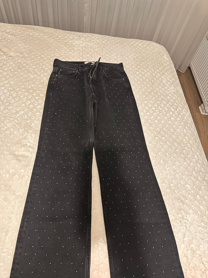 Siyah kot pantolon, normal boy ve regular fit. taşlı, rahat ve şık sokak stili için uygun.✨