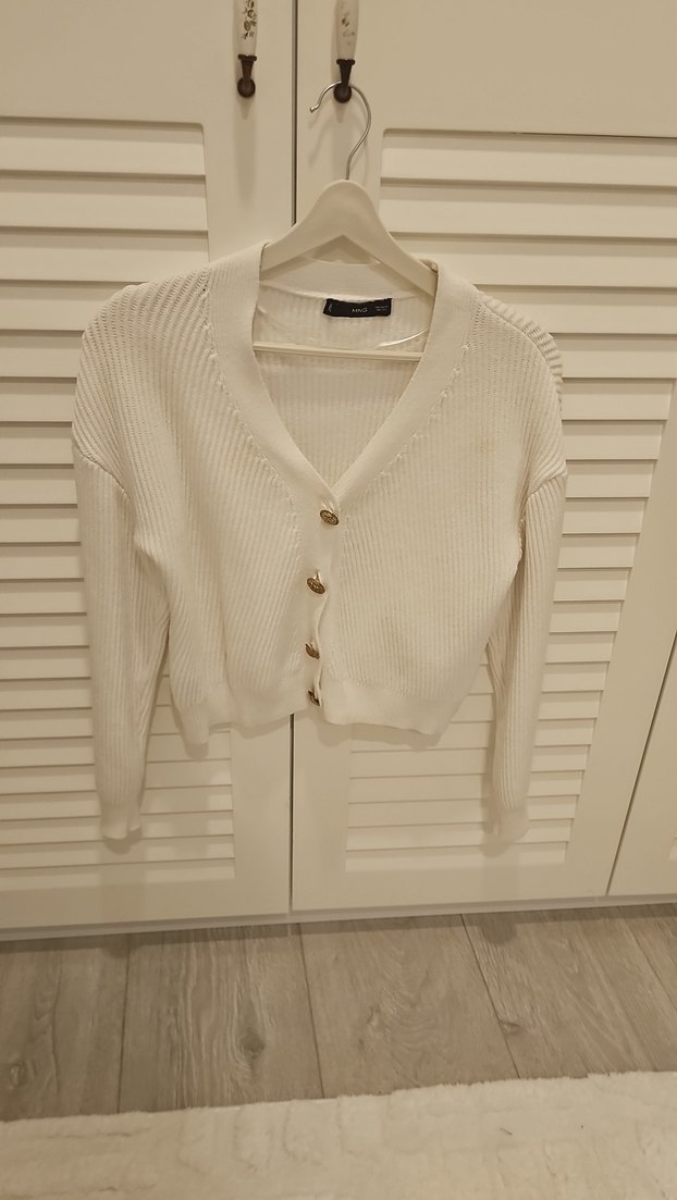 Mango üğmeli Beyaz V Yaka Kadın Hırka