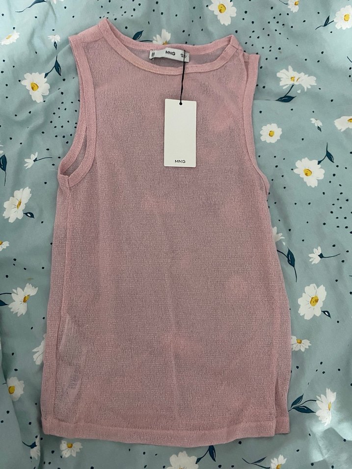 Pembe, kolsuz, yuvarlak yakalı triko örme kadın atlet. Rahat kesimli ve yumuşak sentetik kumaştan yapılmıştır, günlük açık hava kullanımı için uygundur.