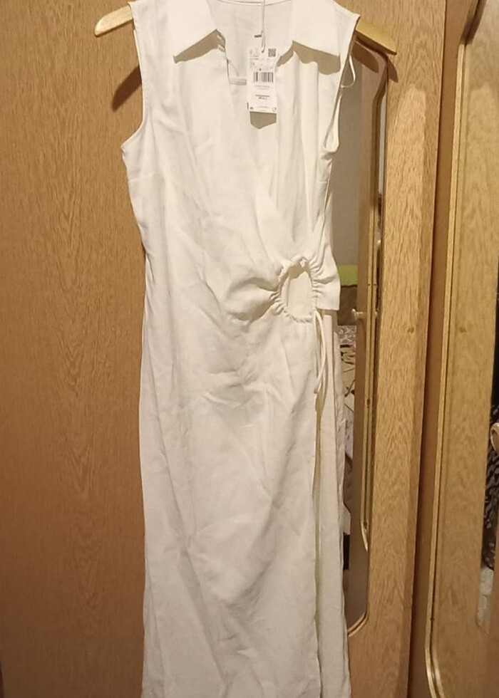 Etiketli ürün, yurtdışından alındı.Değiştirme imkanım olmadığı için aldığım fiyatın yarısına veriyorum.Rengi kırık beyaz.Omuzdan boy 120 cm, iki kol arası koltuk altından 42 cm