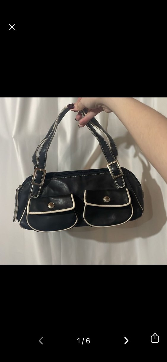 Siyah deri, tokalı askılı ve ön cepli kadın çantası. Günlük kullanıma uygun koyu gotik tarzda. Ufak çizikler var beyaz kısımda ama belli olmuyor fazla yinede ekledim
