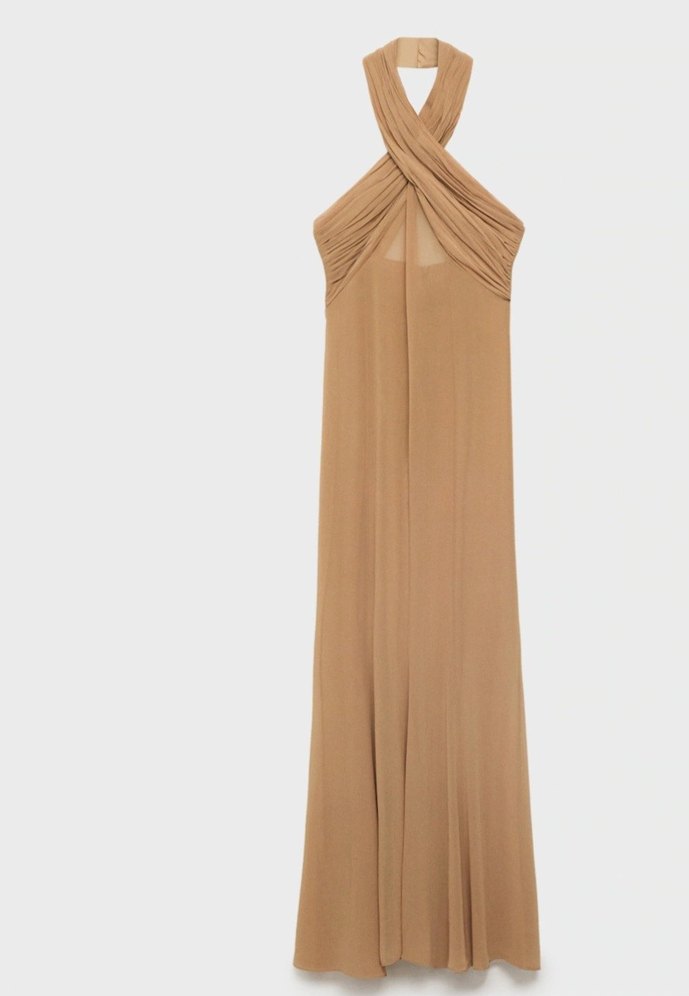 Mango Yarı şeffaf kruvaze yaka uzun elbise
