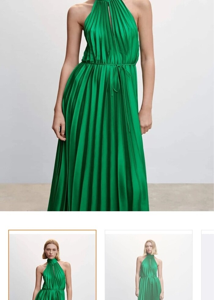 Mango yeşil piliseli beyaz elbise