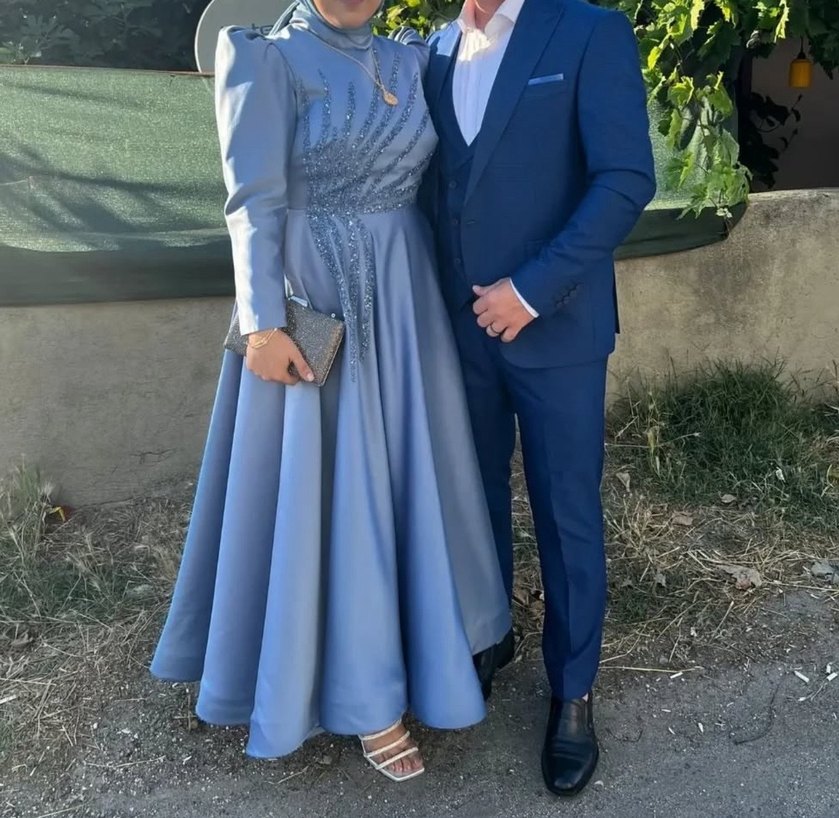 Hafif kabarık abiye elbise tesettüre uygundur bir kez giyildi baş örtüsü ile birlikte kargolanacaktır