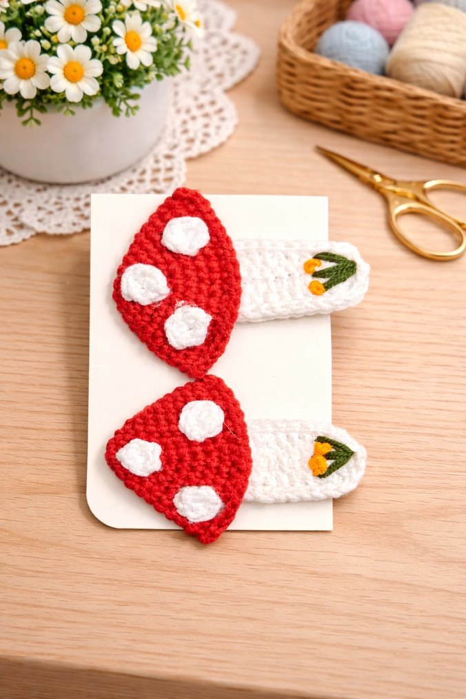 El emeği mantar pens tokalar Minik detaylar, tatlı dokunuşlar… Saçlarda hem şık hem sevimli İkili Fiyatıdır #penstoka #elörgüsü #handmade #amigurimi #mantartoka