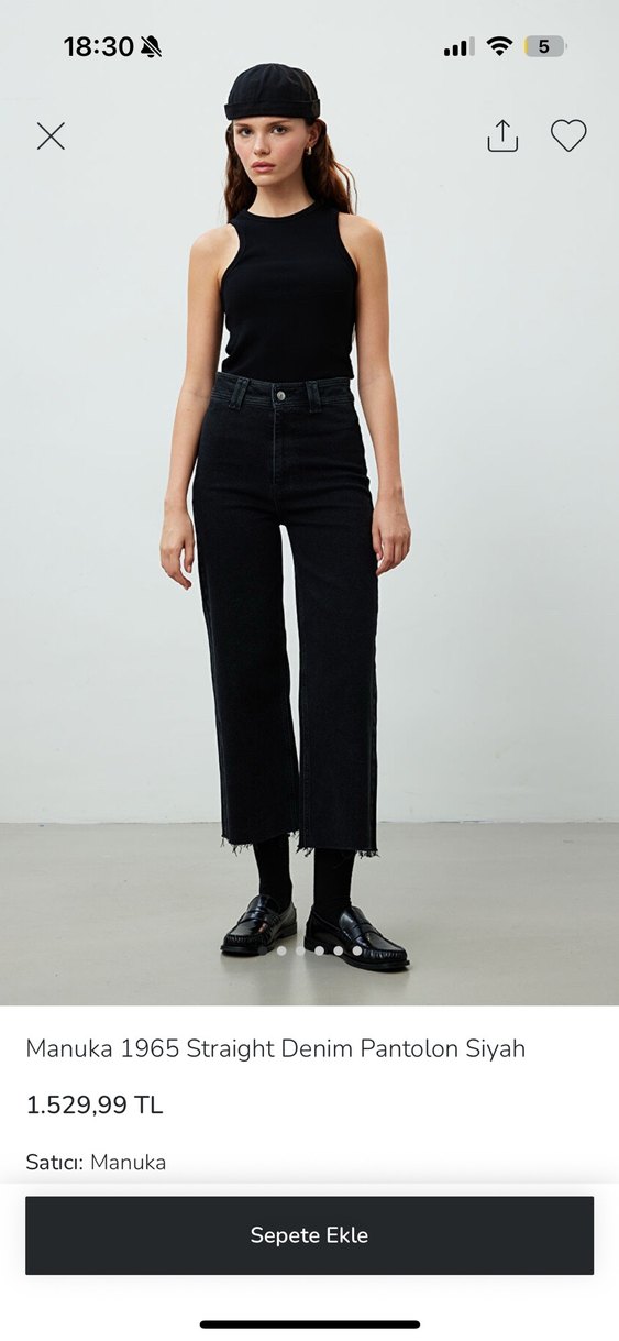 Manuka 1965 siyah düz kesim, normal boy ve rahat kesim denim pantolon, günlük kullanıma uygun şık ve zahmetsiz stil sunar.