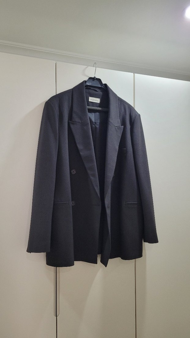 Hiç kullanılmadı. Boy 80 cm, iki kol altı arası genişliği 56 cm. S-M-L bedenlerine uyumlu olabilecek genişlikte oversize bir ceket.