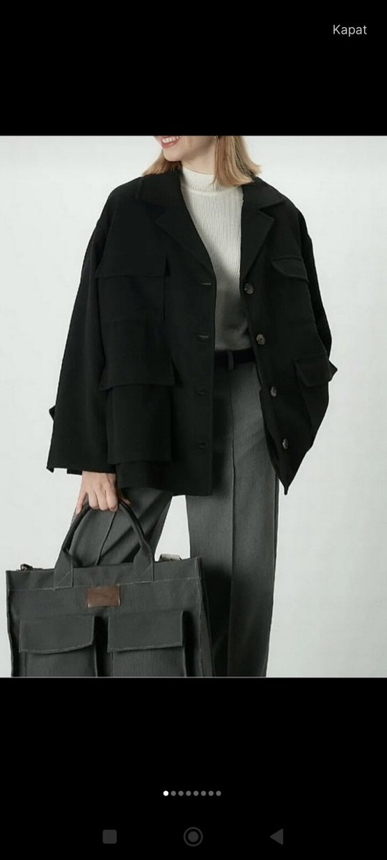 MANUKA Siyah , normal uzunlukta ve regular fit midi kadın ceket, notched lapel yaka ve uzun kolludur, günlük kullanım için şık ve rahat bir seçenektir.