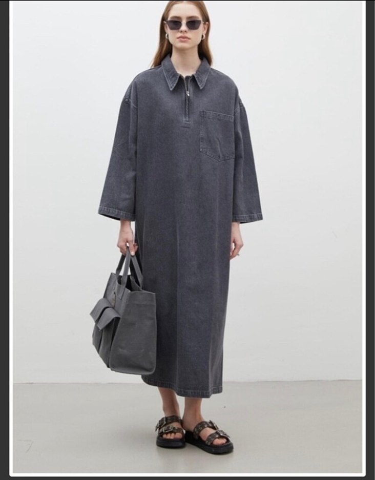 Manuka denim kot elbise az kullanılmıştır. Ml beden