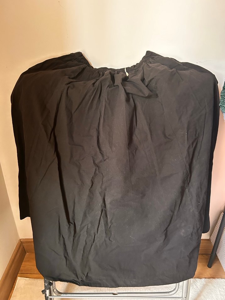 Siyah, drapeli, uzun etek siyah renklidir. Ürün kullanılmamıştır. Etiketi yok s beden fakat 38 beden uyumludur.