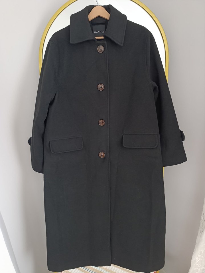Manuka Düğmeli Siyah Uzun kaşe Kaban