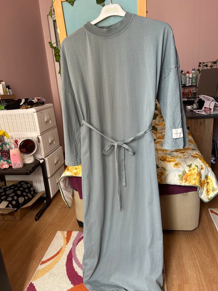 Manuka su yeşili kuşaklı sorunsuz elbise. 1 kez giydim sadece. 700 TL SON FİYAT