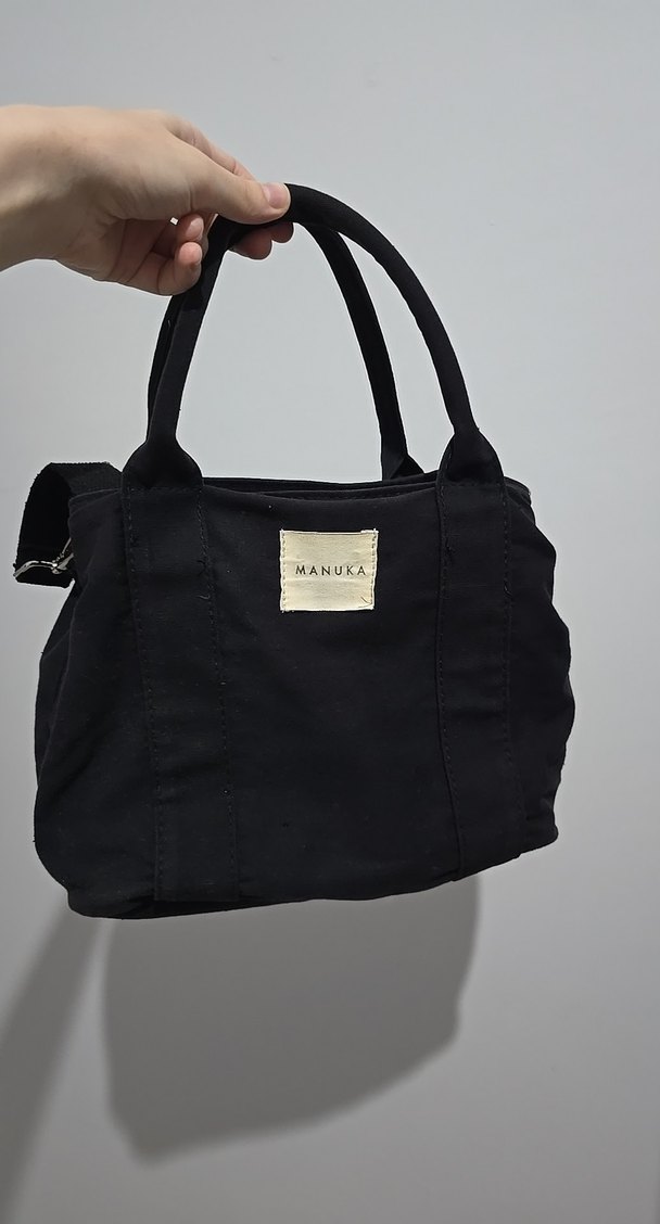 manukanın orta boy kanvas çantası, çift gözlüdür. uzun askısı vardır. Yırtığı vs yoktur. iç astarında hiç bir sorun yok. sadece dışında kumaşında renk solması var. canlı bir siyah değil 1 senedir kullanmıyorum. gayet temiz kullanıldı.
