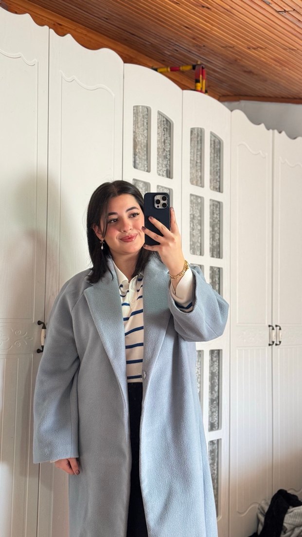 Manuka mavi Midi Kadın Kadife Kaban