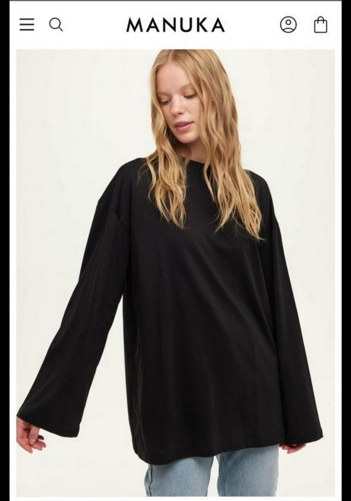 MANUKA Siyah oversize uzun kollu sweatshirt, bisiklet yaka ve rahat kesimiyle günlük kullanıma uygun şık bir parça. yeni etiketli hediye geldi büyük geldiği için satıyorum M-L beden
