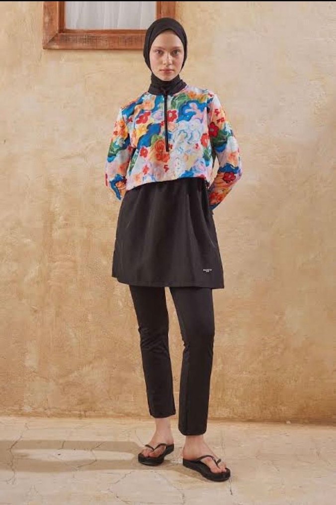 Manuka tesettür mayomKadın Çok Renkli Bağlama Desenli Uzun Kollu