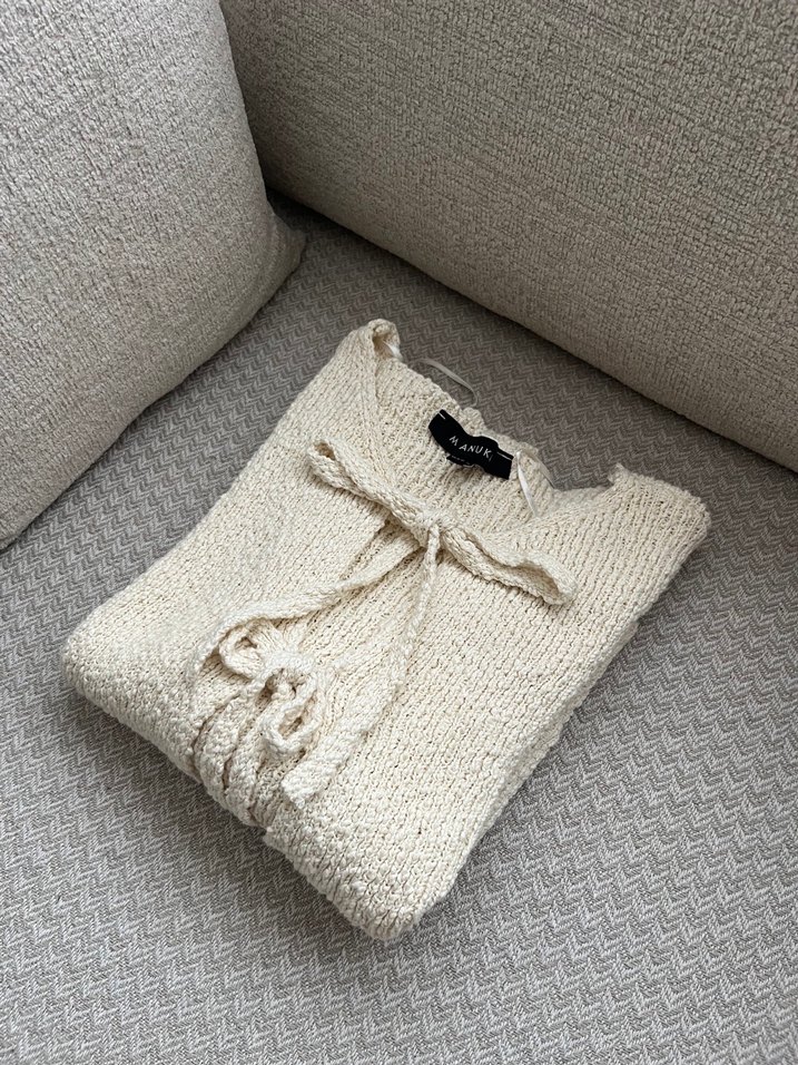 S-M beden. Ekru, yumuşak triko kumaştan hırka