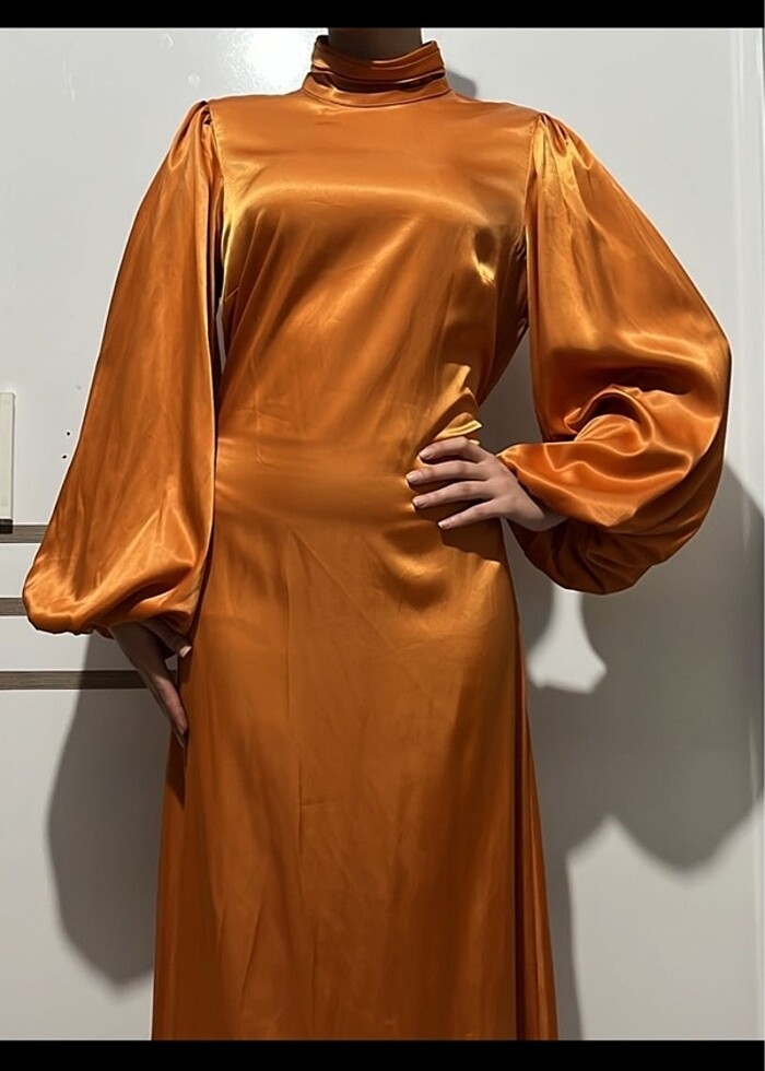 40 beden turuncu saten abiye elbise mezuniyette kullanıldı