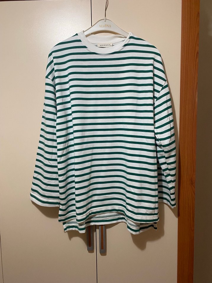 Manuka Yeşil Çizgili Kadın Pamuklu Uzun Kollu Tshirt