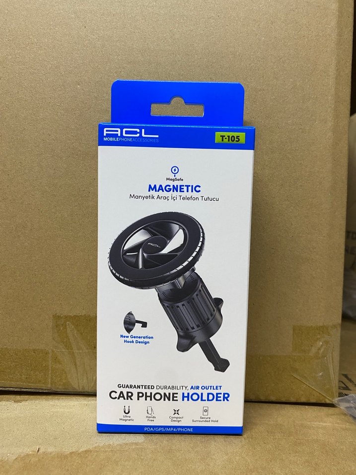 Siyah renkli T-105 manyetik araç içi telefon tutucu, yeni nesil boyun tasarımı ve dayanıklılık garantisi sunar. Hava çıkışına takılır.