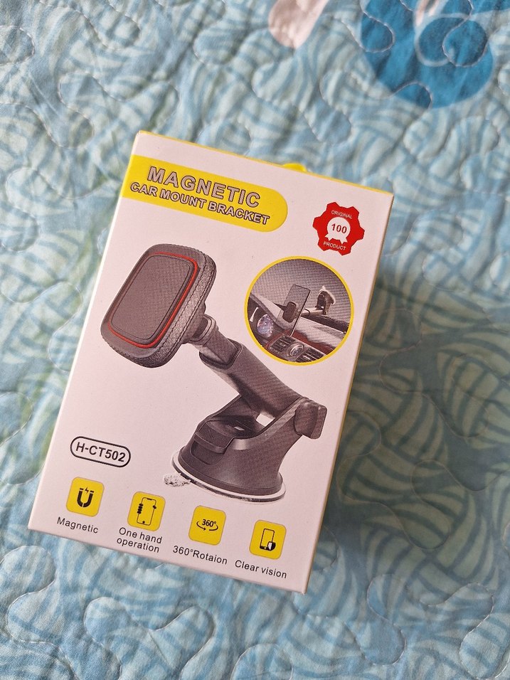 360° dönebilen, manyetik ve tek elle kullanılabilen siyah araç telefon tutucu. Model H-CT502, net görüş sağlar.