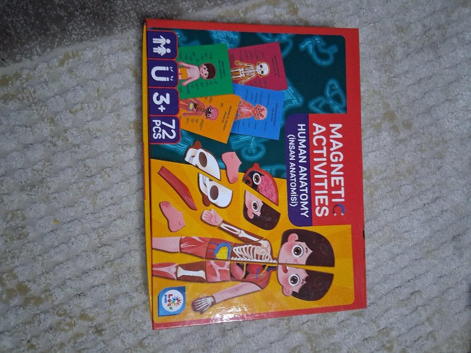 3 yaş ve üzeri çocuklar için 72 parçalı, renkli manyetik insan anatomisi eğitici oyuncak.