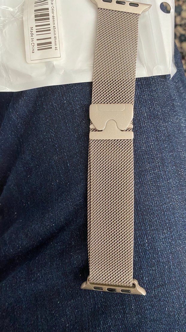 Manyetik kapama metal örgü sıfır renk yıldız rengi geçmektedir titanyum rengine yakın Paraşüt toka stili görseldir çalışmaz 44-49 mm arası tüm apple watchlara uyumludur