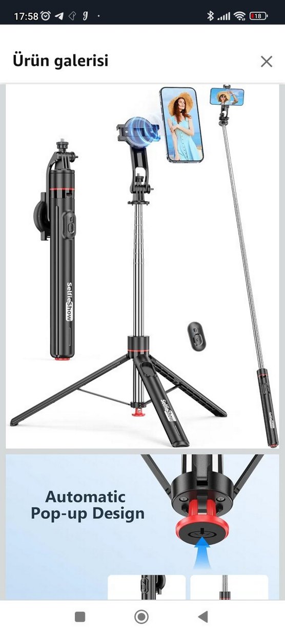 70 inç Manyetik Otomatik Selfie Çubuğu Seyahat Tripodu, Manyetik Uzaktan Kumandalı Otomatik Açılan Telefon Tripodu, 360° Dönebilen Uzatılabilir Akıllı Telefon Standı, iPhone/Android ile Uyumlu elimde kullanılmamış 3 adet tripod var. maksimum yükseklik 178cm. yurtdışından aldım.
