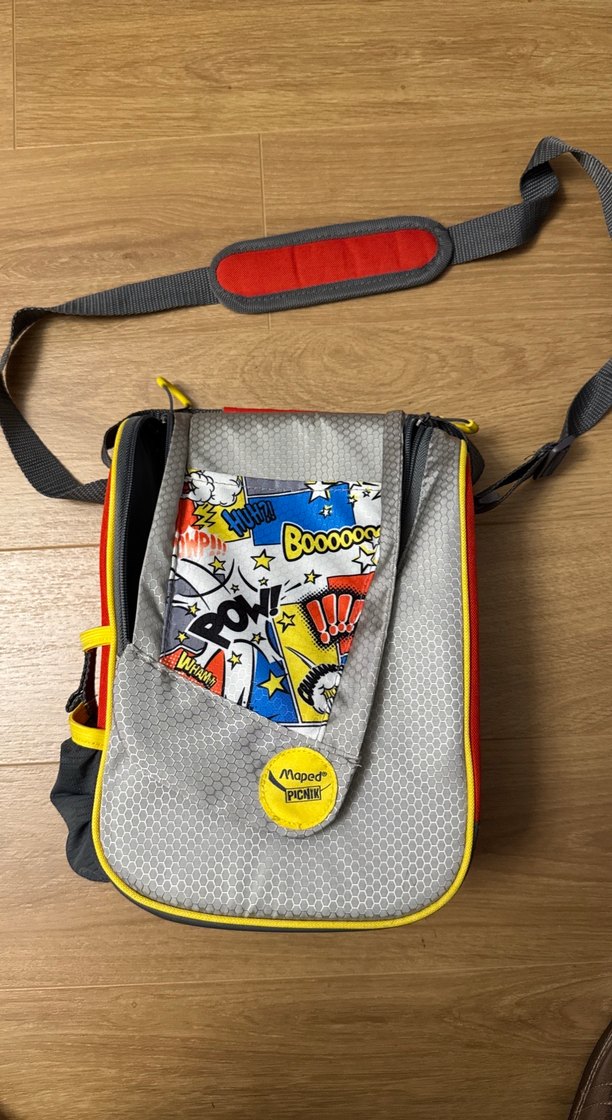 Maped Piknik gri çocuk okul çantası,termoslu, renkli çizgi roman desenli ön cepleri ve ayarlanabilir omuz askısıyla konfor sağlar.