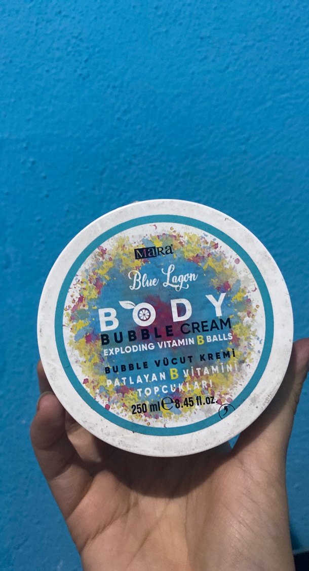 MaRa Blue Lagoon vücut kremi, patlayan vitamin B toplarıyla cildi besler. 250ml kutuda sunulur.