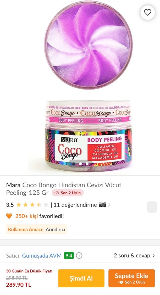 Mara Coco Bongo vücut peelingi, benim aldığım ürünün sadece aroması farklı 2. Resimde belirttim 1 kere parmak ucuyla denedim sonra vakit bulamadığım için kullanamıyorum