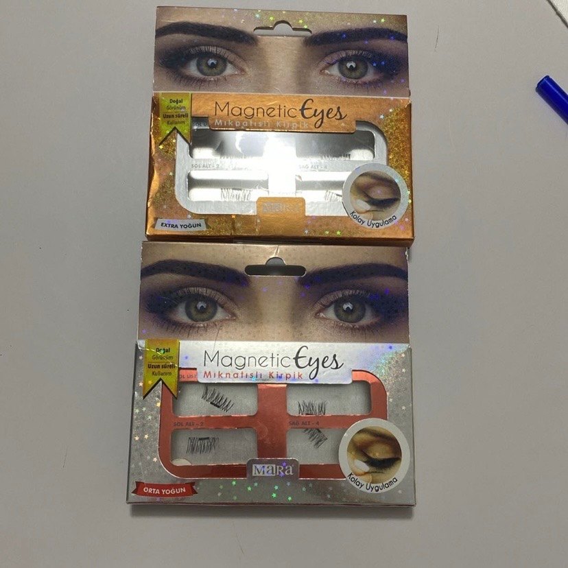 MaRa Manyetik Kirpik seti, açık bej renkte. Kolay uygulama sunan ve doğal görünüm sağlayan orta ve ekstra yoğunluk seçenekleriyle.