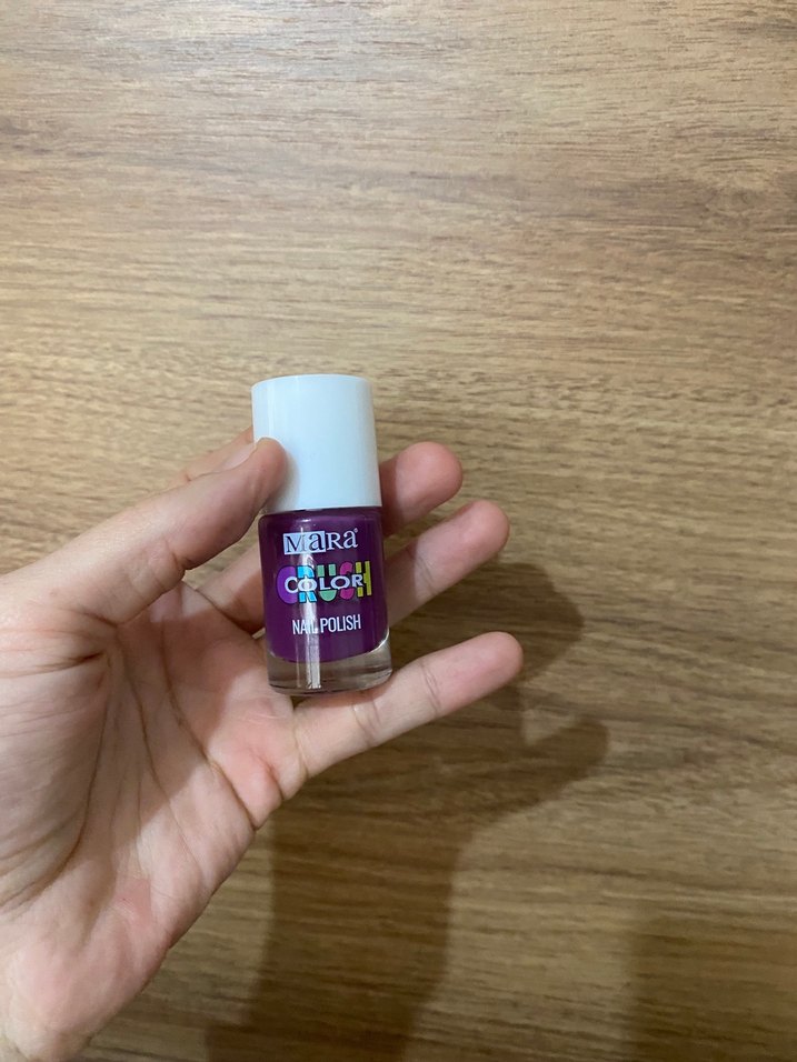 MaRa markasına ait parlak mor renkte tırnak cilası, canlı ve parlak bir görünüm sağlar.
