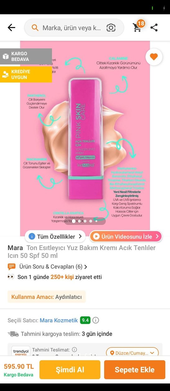 Mara Pink Skin Care açık tenler için ton eşitleyici ve aydınlatıcı yüz bakım kremi, SPF 50 koruma ve 50 ml ambalajda sunulur.