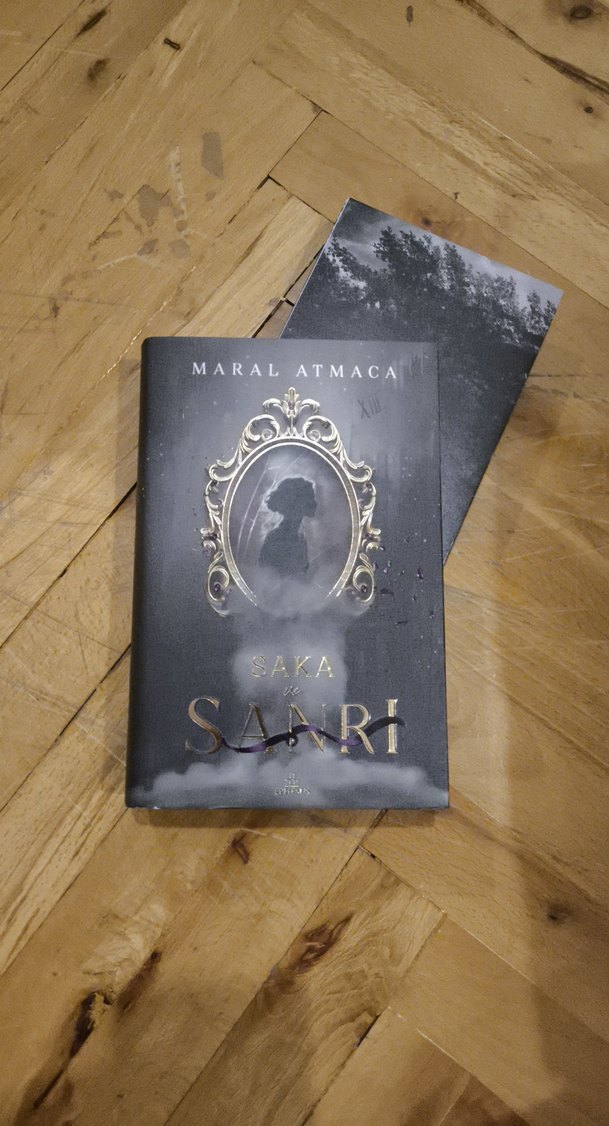 Maral Atmaca'nın 'Saka ve Saari' adlı romanı, vintage siluet çerçevesiyle karanlık bir kapak tasarımına sahip. Yan boyamalı
