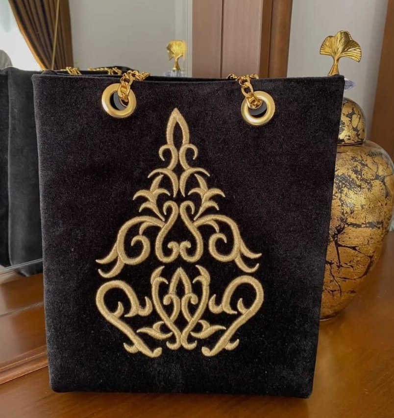 Maraş İşi Sim Sırma Zincir Detaylı Süet Çanta