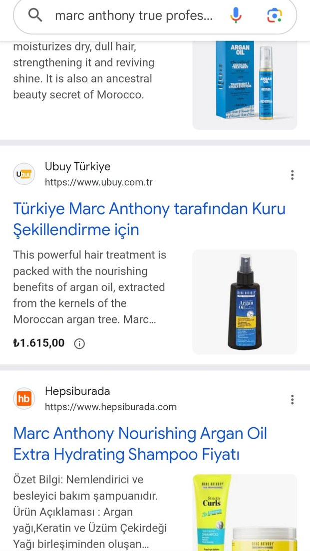Marc Anthony Besleyici Argan Yağı, Fas argan ağacından elde edilen argan yağı ile güçlendirilmiş kuru saçlar için bakım spreyi. Saçı güçlendirir ve parlaklık kazandırır. 2 3 defa kullanıldı.