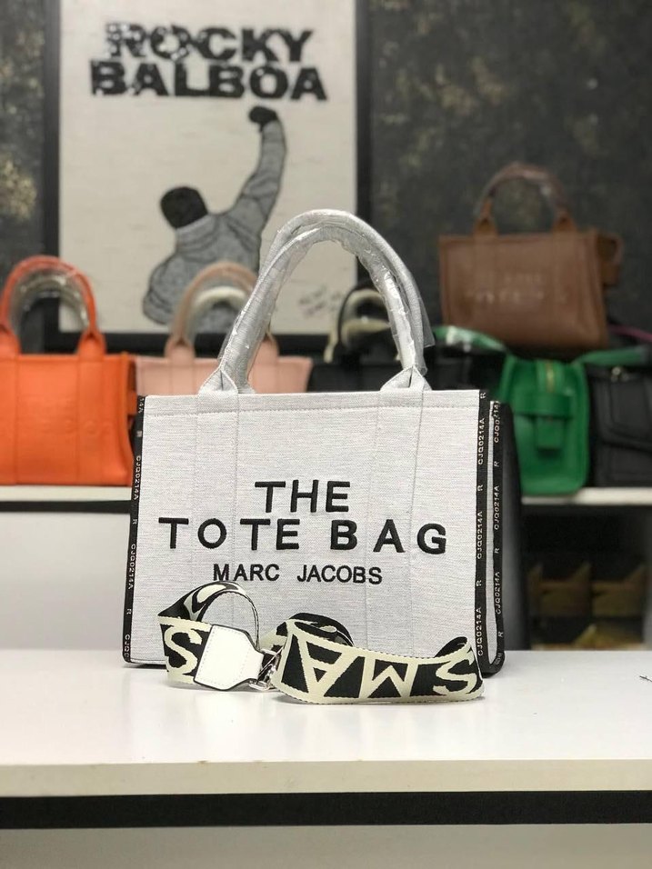 Marc Jacobs markalı beyaz baskılı tekstil çanta, fermuarlı kapama ve sokak stili için uygundur.
