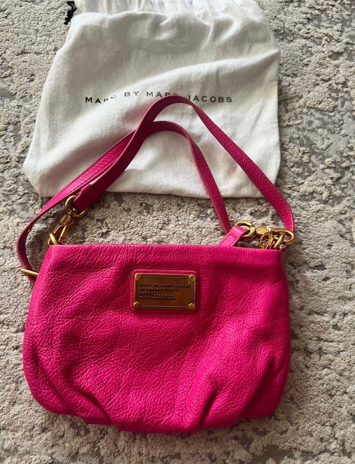 Marc Jacobs pembe deri kadın çanta, fermuarlı kapama ve desenli yapısıyla trend sokak tarzına uygun şık bir modeldir. Orijinaldir