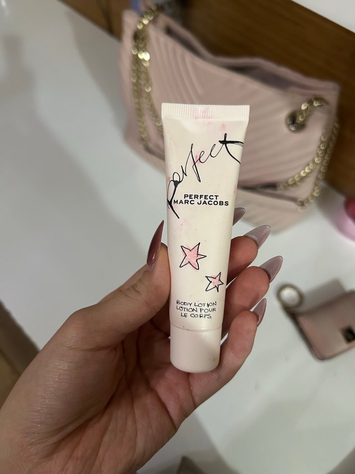 Marc Jacobs Perfect vücut losyonu, cildinizi etkili şekilde nemlendiren yumuşak ve besleyici formüle sahiptir. Kompakt tüpte sunulur. ✨ mükemmel kokuyor parfümün yanında almıştım fakat hiç kullanmadım, yalnızca bir defa denedim ürün %98 dolu, 30 ml